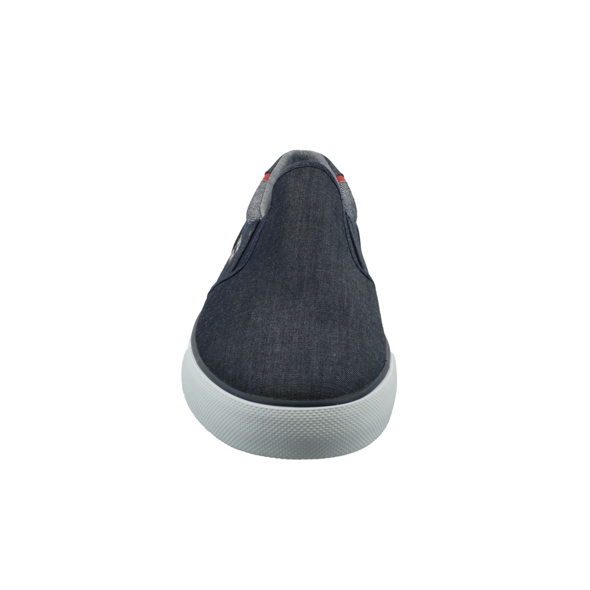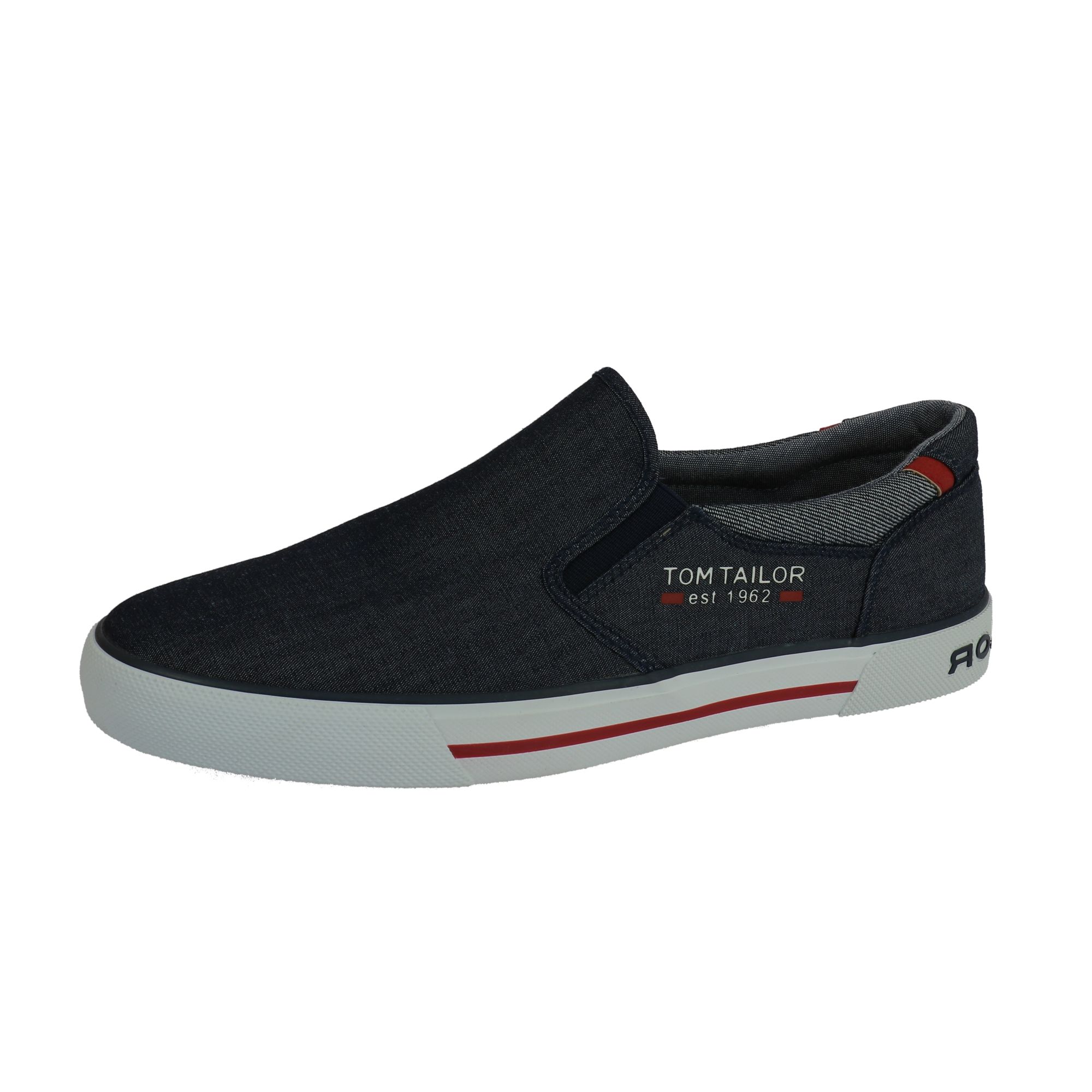 Moderní pánské polobotky od značky Tom Tailor v modré barvě. Svršek obuvi je z kvalitního textilu. Rychlé nazouvání a zároveň maximální pohodlí Vám zajistí všité pružinky z boční strany v nártové části, které se perfektně přizpůsobí tvaru Vaší nohy. Hezkou ozdobou je nápis Tom Tailor z venkovní strany boty. Uvnitř obuvi je kvalitní textilní stélka. Pěkným kontrastním prvkem je bílá podešev, zvýrazněna jemnou červenou linkou a nápisem Tom Tailor v patní části. Tyto nazouváky si rychle oblíbíte. Nemusíte se zdržovat žádným zavazováním tkaniček, ale stačí jen nazout a můžete jít ven.