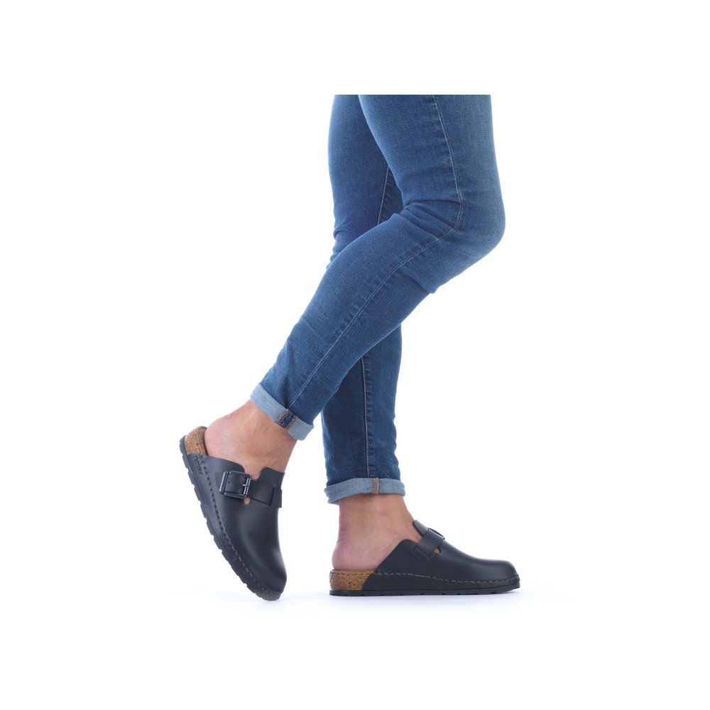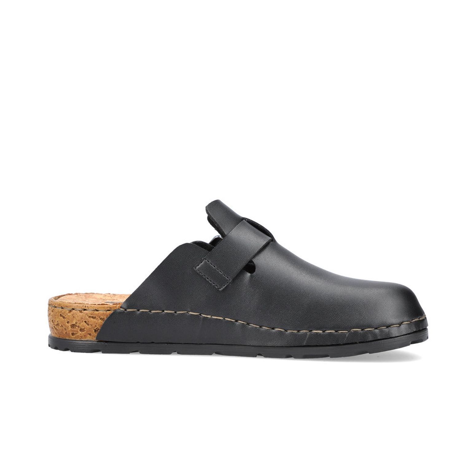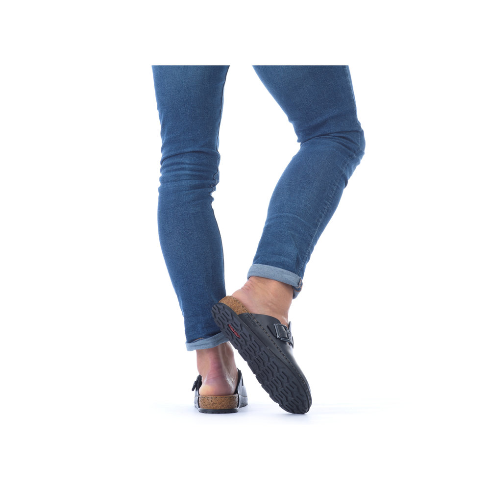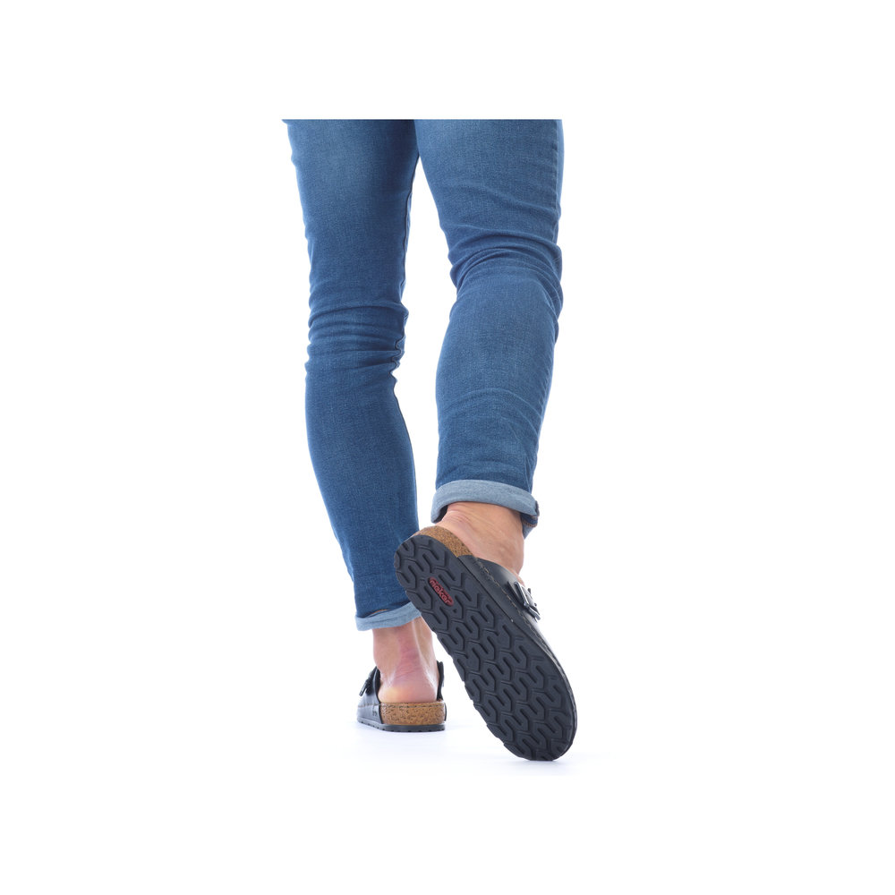 Pohodlné pánské pantofle od značky Rieker v černé barvě budou skvělým doplňkem ke kraťasům nebo riflím. Kdo má rád pantofle s uzavřenou špicí, je tento model skvělou volbou. Celkový vzhled podtrhne pásek s ozdobnou sponou a kontrastní světlé šití po obvodu obuvi. Maximální pohodlí po celý den Vám zajistí příjemně měkká stélka. Technologie: Antistress - podešev je díky této technologii lehká, flexibilní, absorbuje nárazy při došlapu a snadno se přizpůsobí každé noze.