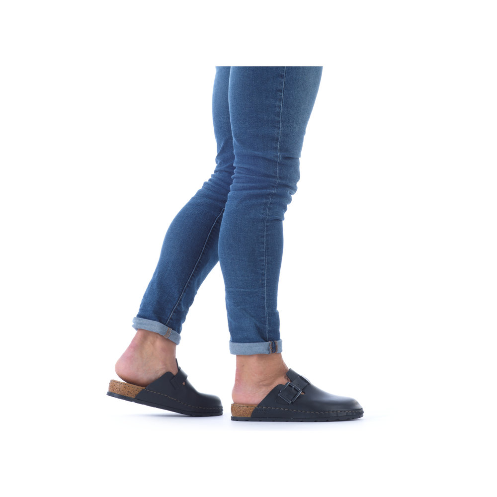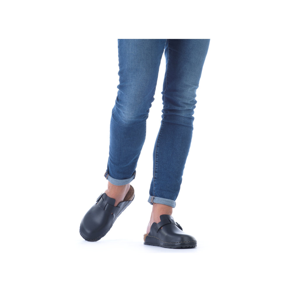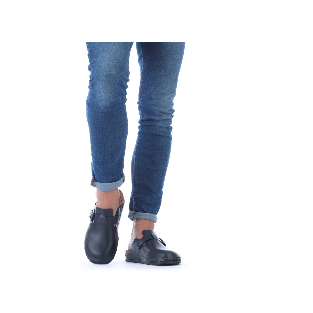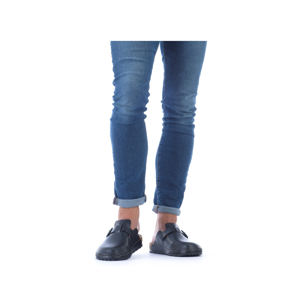 Pohodlné pánské pantofle od značky Rieker v černé barvě budou skvělým doplňkem ke kraťasům nebo riflím. Kdo má rád pantofle s uzavřenou špicí, je tento model skvělou volbou. Celkový vzhled podtrhne pásek s ozdobnou sponou a kontrastní světlé šití po obvodu obuvi. Maximální pohodlí po celý den Vám zajistí příjemně měkká stélka. Technologie: Antistress - podešev je díky této technologii lehká, flexibilní, absorbuje nárazy při došlapu a snadno se přizpůsobí každé noze.