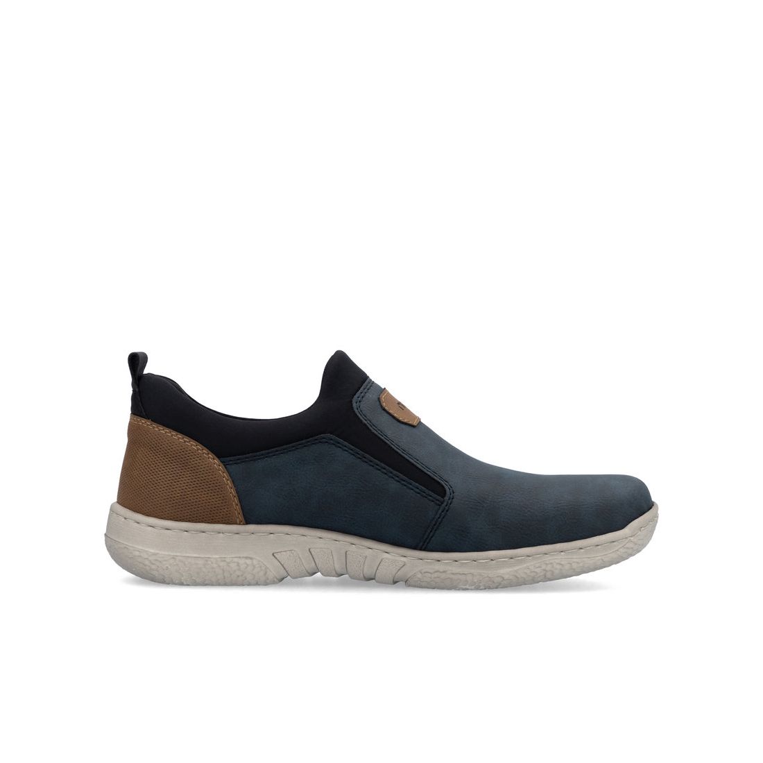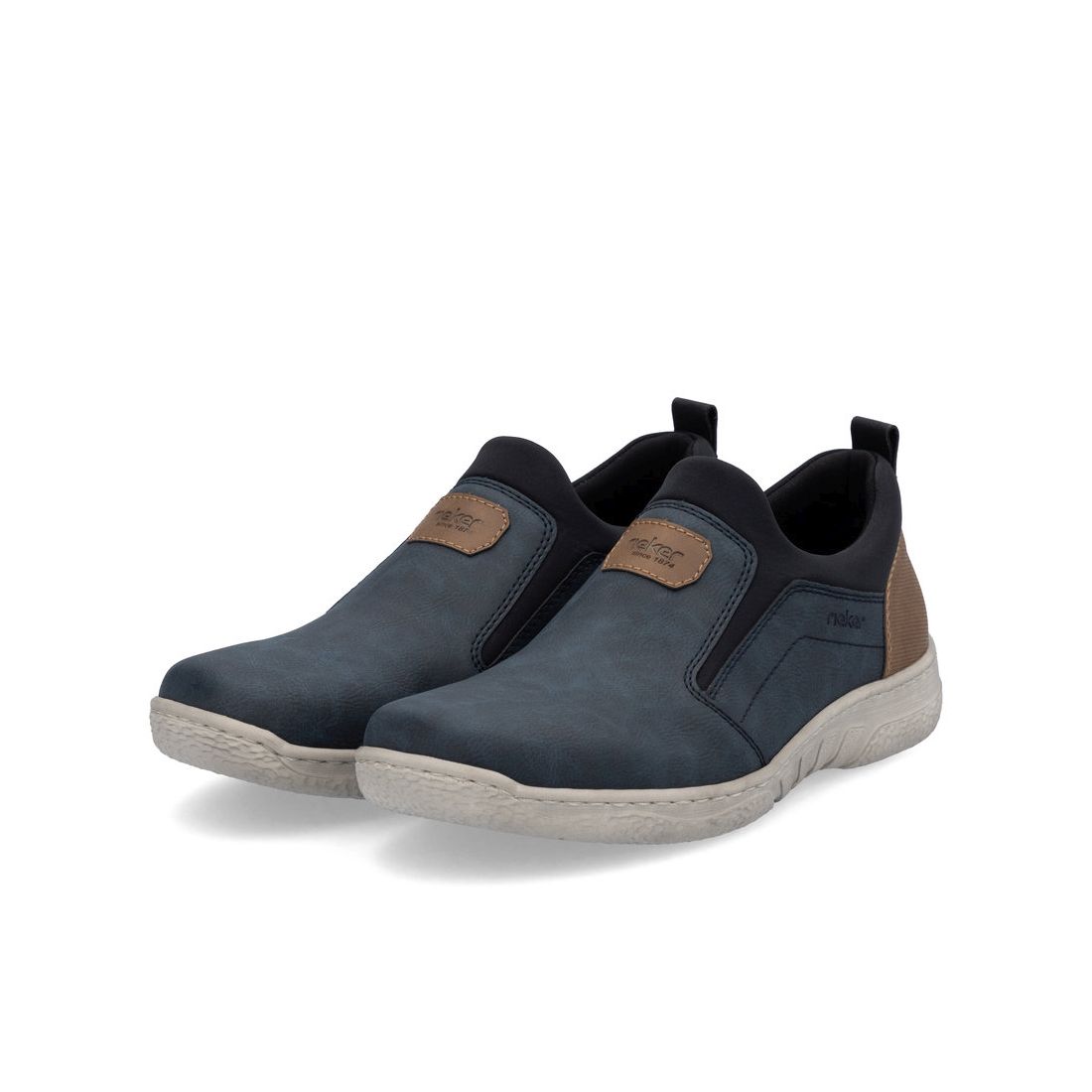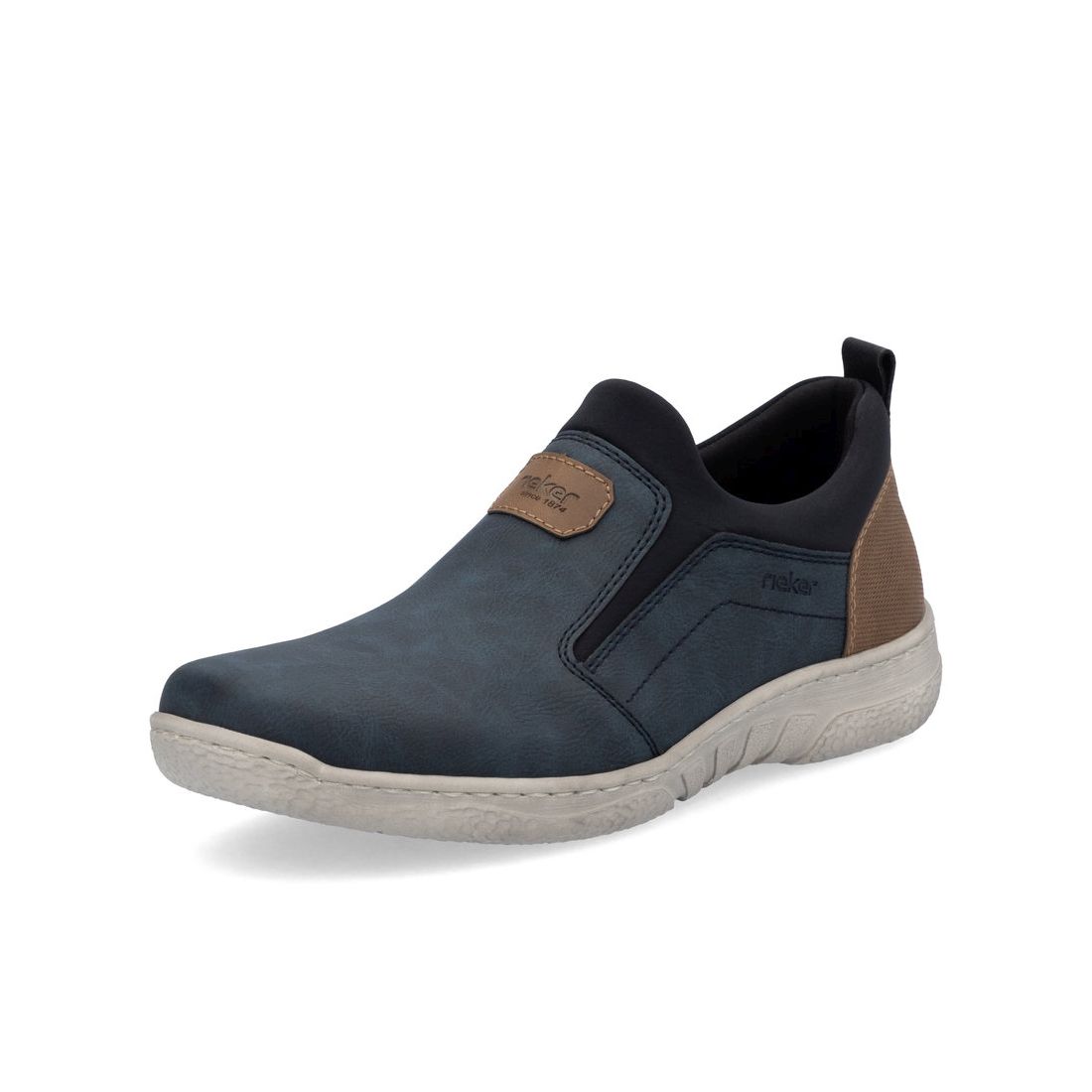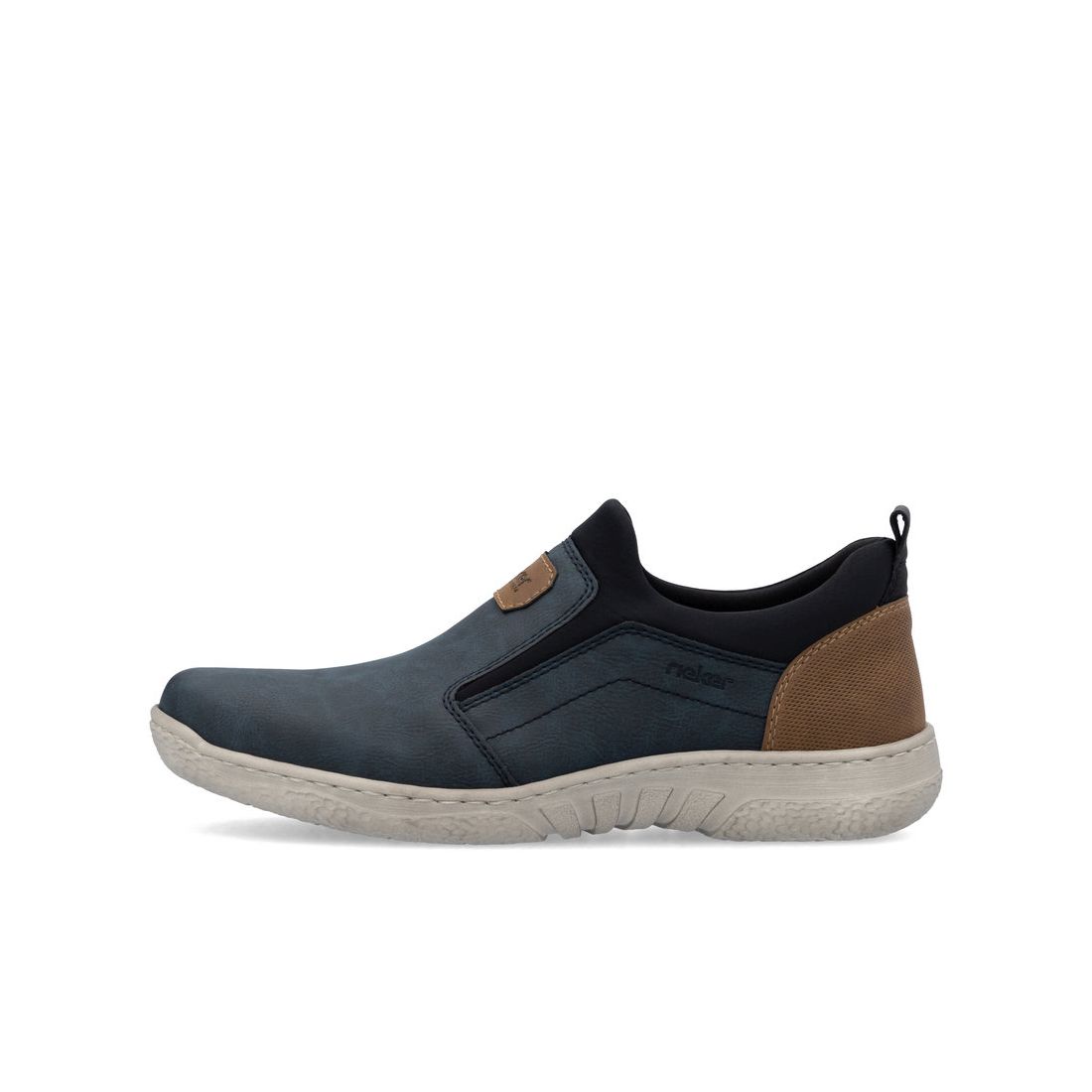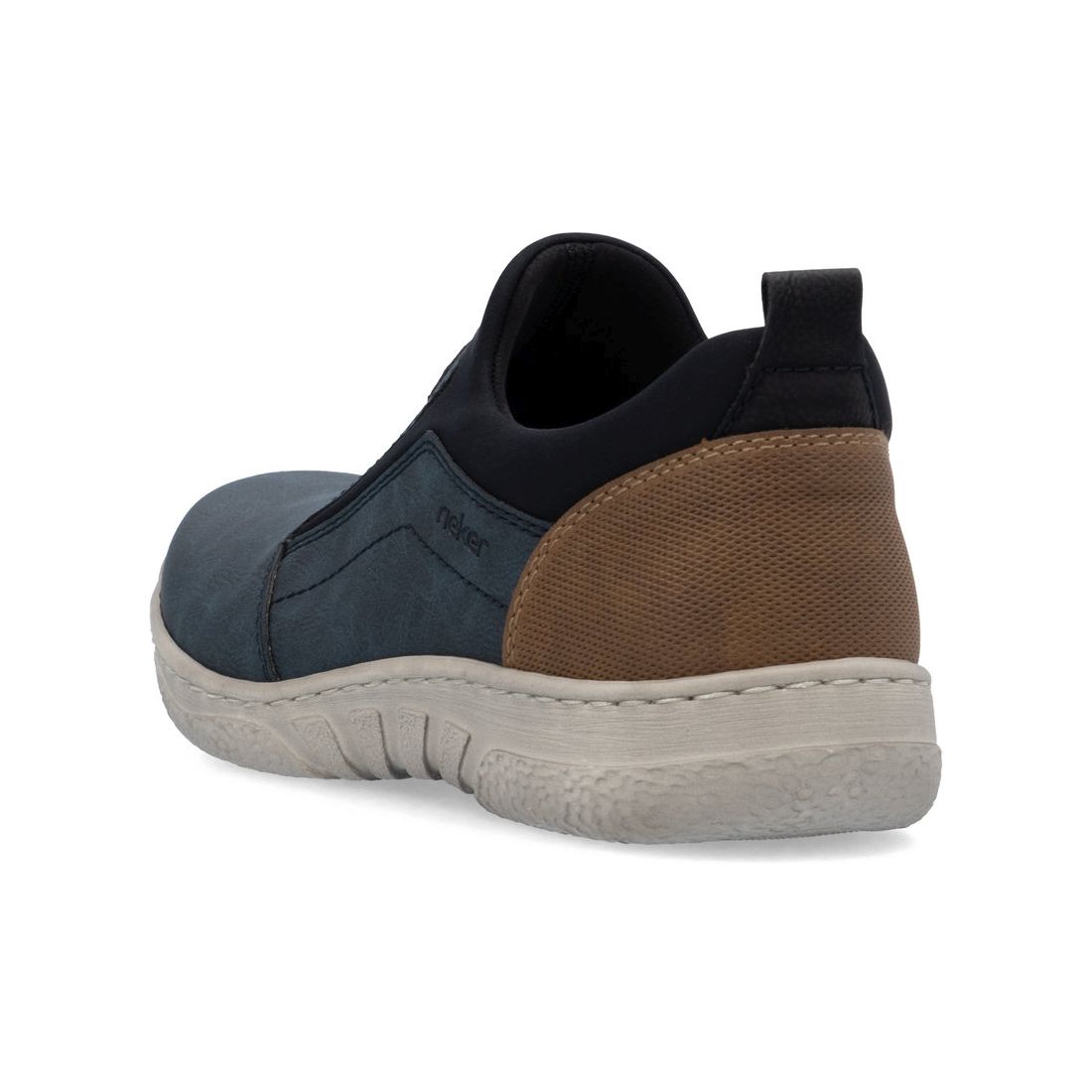 Moderní pánské mokasíny Rieker v modré barvě. Svrchní materiál je kombinací kvalitního textilu a syntetiky. Na první pohled zaujme originálně zpracovaný svršek modré barvy, který je doladěn hnědými prvky v podobě nápisu Rieker na nártu a patní částí. Horní lem je z pružného materiálu a tak se Vám budou boty snadno obouvat. Uvnitř najdete pohodlnou měkkou stélku, která ulehčí Vašim nohám při každém kroku. Stélka je navíc vyjímatelná a tak ji můžete kdykoliv vyndat, očistit, vyvětrat nebo vyměnit například za ortopedickou. Technologie: Antistress - díky této technologii je obuv lehká, flexibilní, absorbuje nárazy při došlapu a snadno se přizpůsobí každé noze. Tato obuv má vyjímatelnou stélku. Výrobní způsob - šitá obuv.