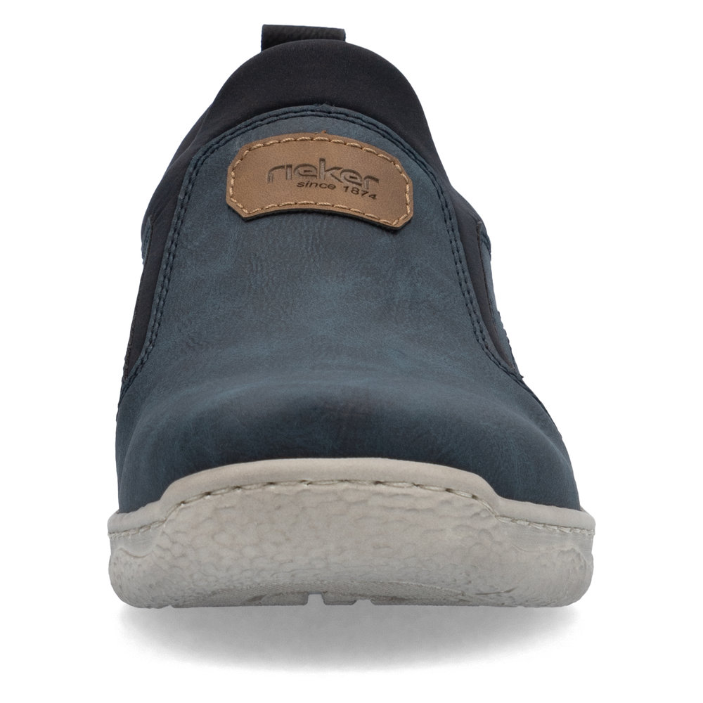 Detailní informace Moderní pánské mokasíny Rieker v modré barvě. Svrchní materiál je kombinací kvalitního textilu a syntetiky. Na první pohled zaujme originálně zpracovaný svršek modré barvy, který je doladěn hnědými prvky v podobě nápisu Rieker na nártu a patní částí. Horní lem je z pružného materiálu a tak se Vám budou boty snadno obouvat. Uvnitř najdete pohodlnou měkkou stélku, která ulehčí Vašim nohám při každém kroku. Stélka je navíc vyjímatelná a tak ji můžete kdykoliv vyndat, očistit, vyvětrat nebo vyměnit například za ortopedickou.
