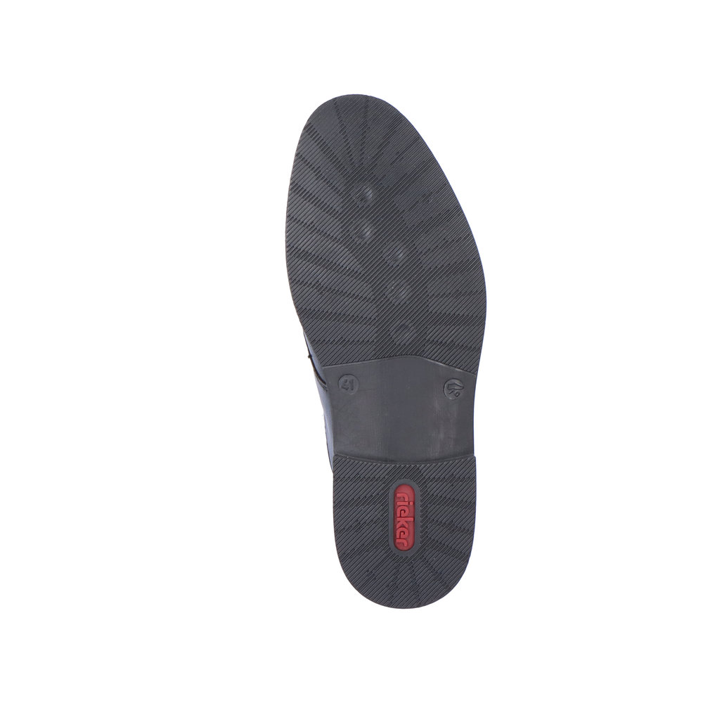 Pánské polobotky pro každý den? Tyto boty od značky Rieker jsou ty pravé. Každý den se v nich budete cítit skvěle díky měkké stélce a flexibilní podešvi, která se přizpůsobí každému Vašemu kroku a tlumí nárazy. Díky tkaničkám si obuv perfektně přizpůsobíte svým nohám. Jemné provedení v černé barvě se světlým prošíváním doladí hnědo-černá podešev. Hravě tyto boty sladíte s Vaším oblečením a bez obav můžete vyrazit do práce nebo na schůzku. Technologie: Antistress - podešev je díky této technologii lehká, flexibilní, absorbuje nárazy při došlapu a snadno se přizpůsobí každé noze.