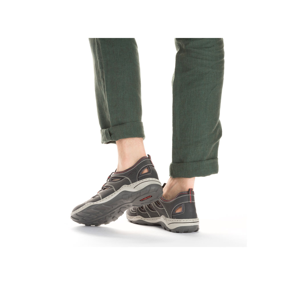 Nadčasový styl a pohodlí, to jsou tyto pánské sandály Rieker. Snadné obouvání, kožená stélka a flexibilní podešev, která tlumí nárazy a přizpůsobuje se každému kroku. Tyto pánské boty skvěle doladí Váš outfit, ať už do práce nebo ve volném čase. Technologie: Antistress - obuv Rieker Vám nabízí komfortnější chůzi - tato obuv je lehká, pružná, prostorná a skvěle absorbují nárazy, tím chrání páteř.