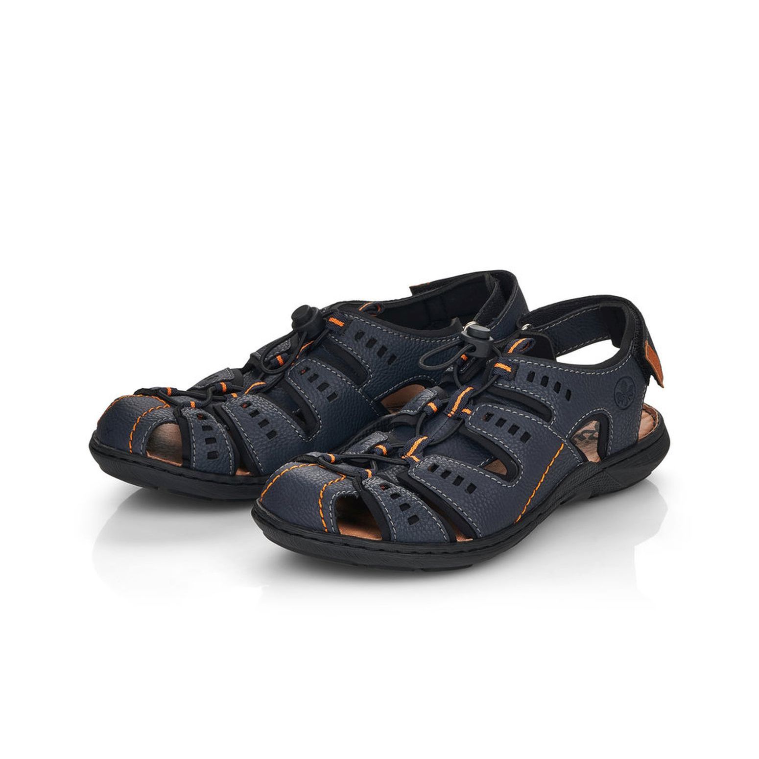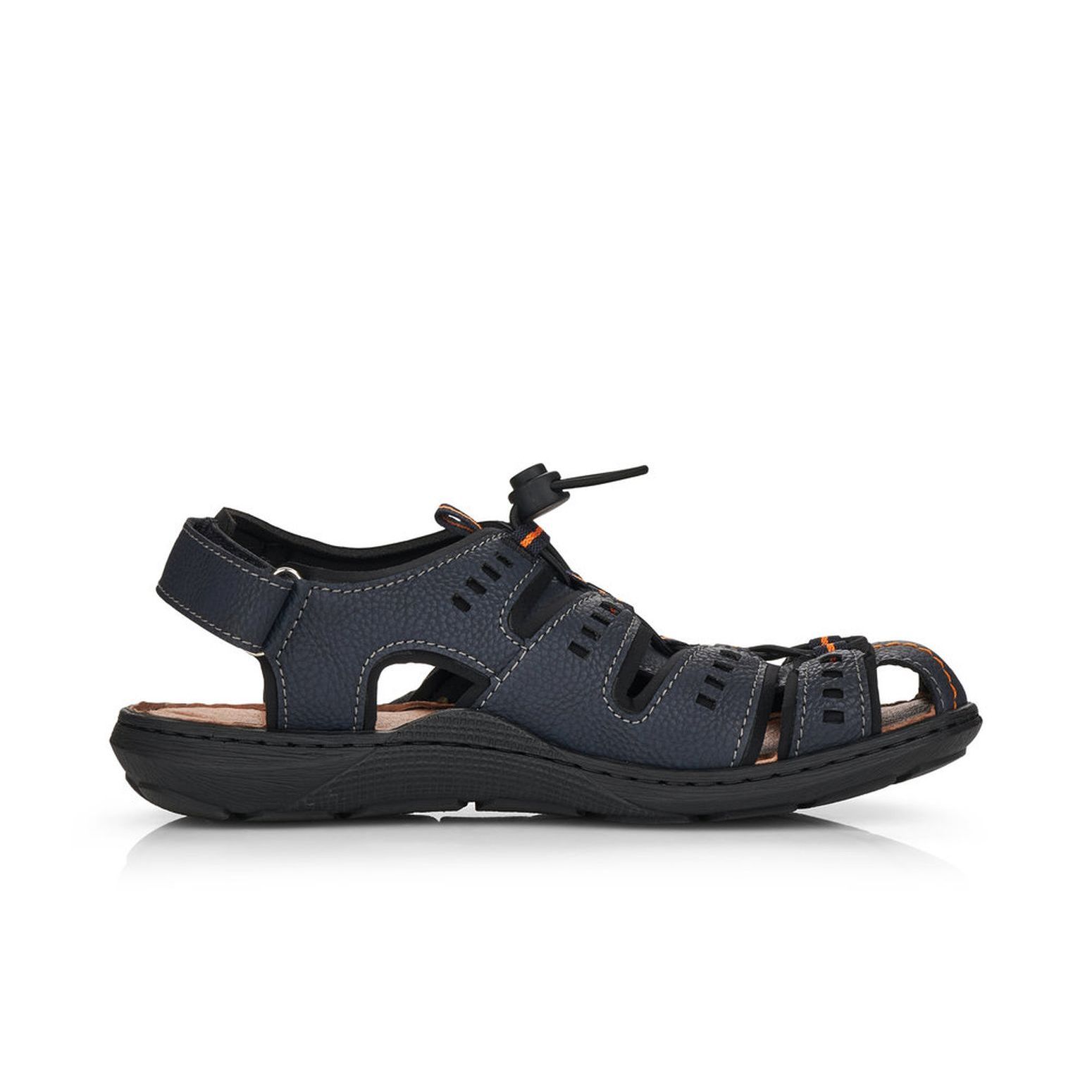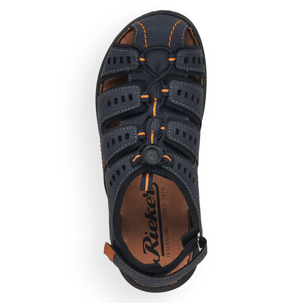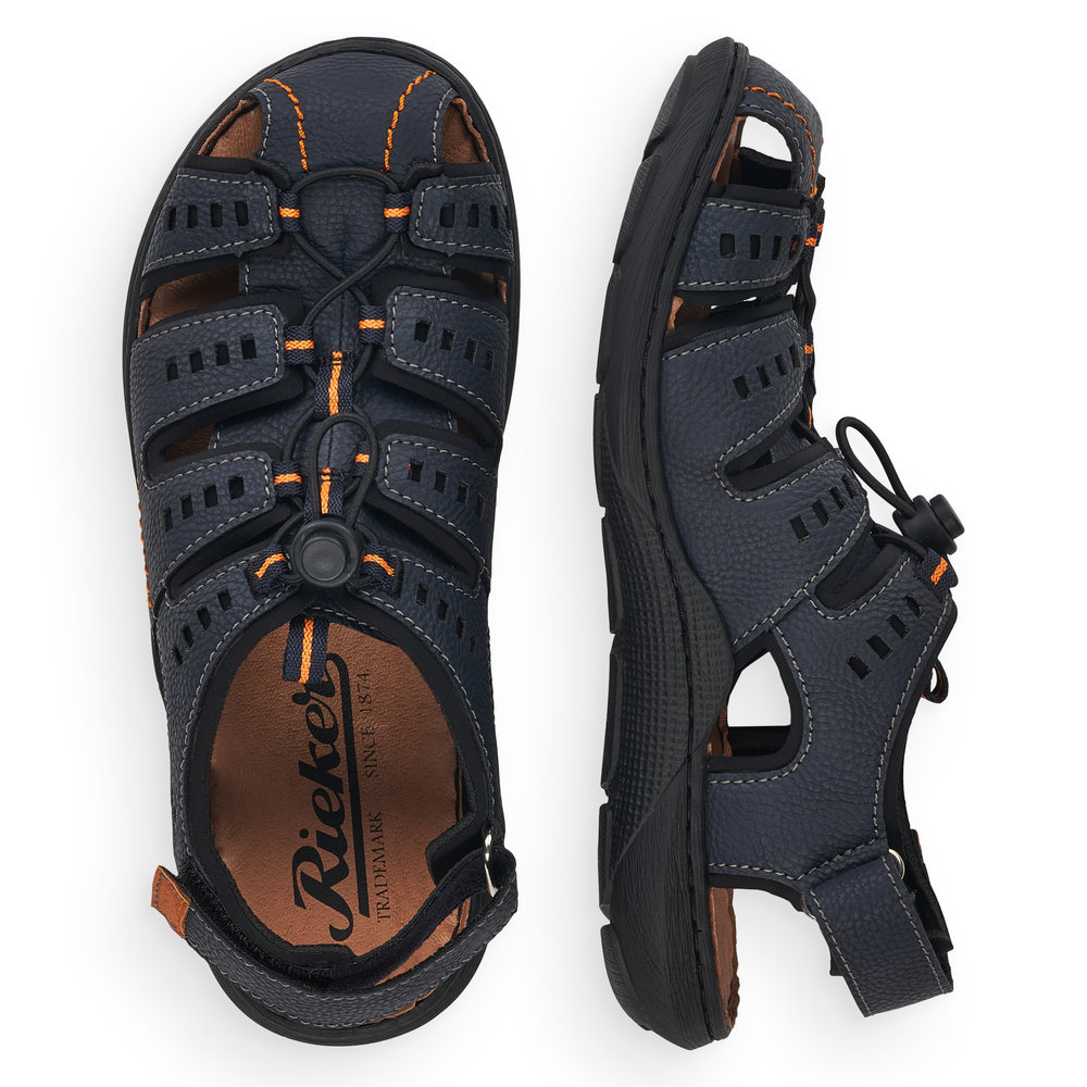 Pohodlné pánské sandály sportovního stylu, v modré barvě. Svršek obuvi je z kvalitní syntetiky a je perforovaný, což zajišťuje příjemné odvětrávání. Díky pružné gumičce, která je nastavitelná, si můžete nastavit šíři obuvi dle svých potřeb. Pásek za patou je nastavitelný, je na suchý zip. Pohodlí při každém kroku budete mít díky měkkým stélkám a kvalitní podešvi s technologií Antistress, která perfektně tlumí nárazy a otřesy. Podešev je se svrškem spojena šitým způsobem, což je pro značku Rieker typické. Šitý způsob napomáhá k tomu, aby byla obuv maximálně pohodlná, více se přizpůsobovala tvaru chodidla. Technologie: Antistress - podešev je díky této technologii lehká, flexibilní, absorbuje nárazy při došlapu a snadno se přizpůsobí každé noze.