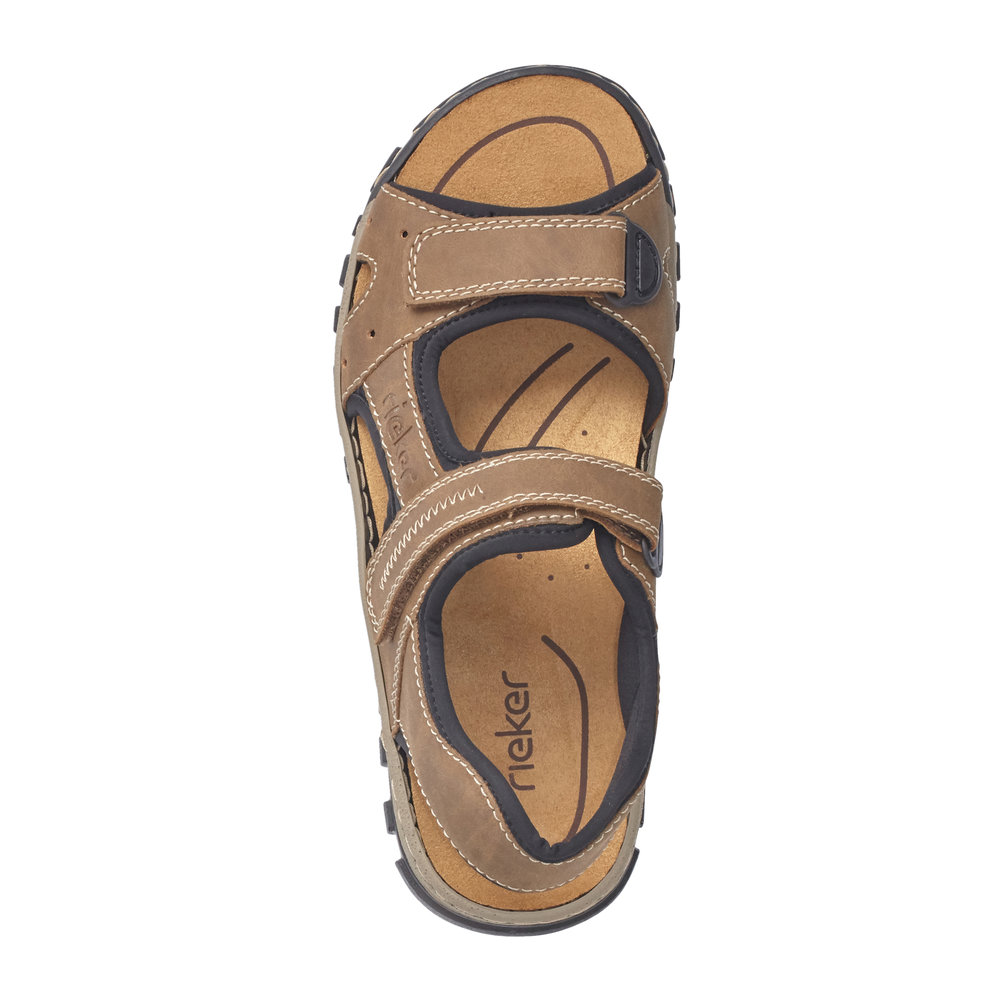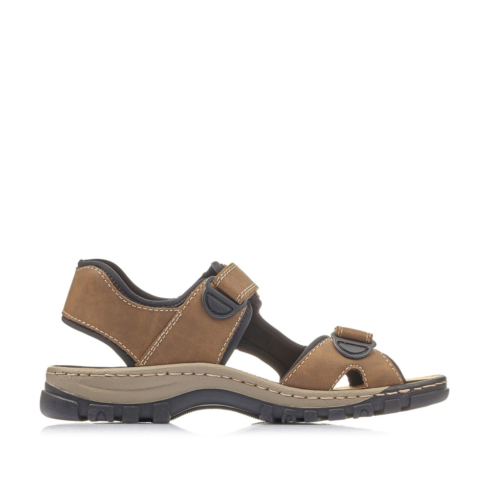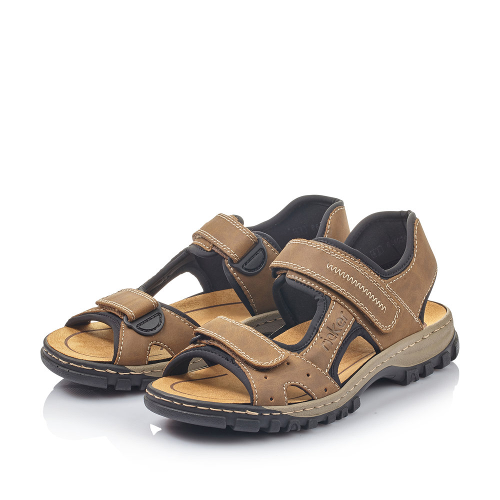 Letní pánské sandály Rieker v hnědé barvě mají praktické dva suché zipy pro upravení si obuvi dle svých potřeb. Logo a barevná kombinace zaujmou na první pohled. Pohodlná stélka a lehká flexibilní podešev Vám zpříjemní každý došlap. Tyto sandály se Vám budou lehce kombinovat s Vaším šatníkem. Technologie: Antistress - podešev je díky této technologii lehká, flexibilní, absorbuje nárazy při došlapu a snadno se přizpůsobí každé noze.