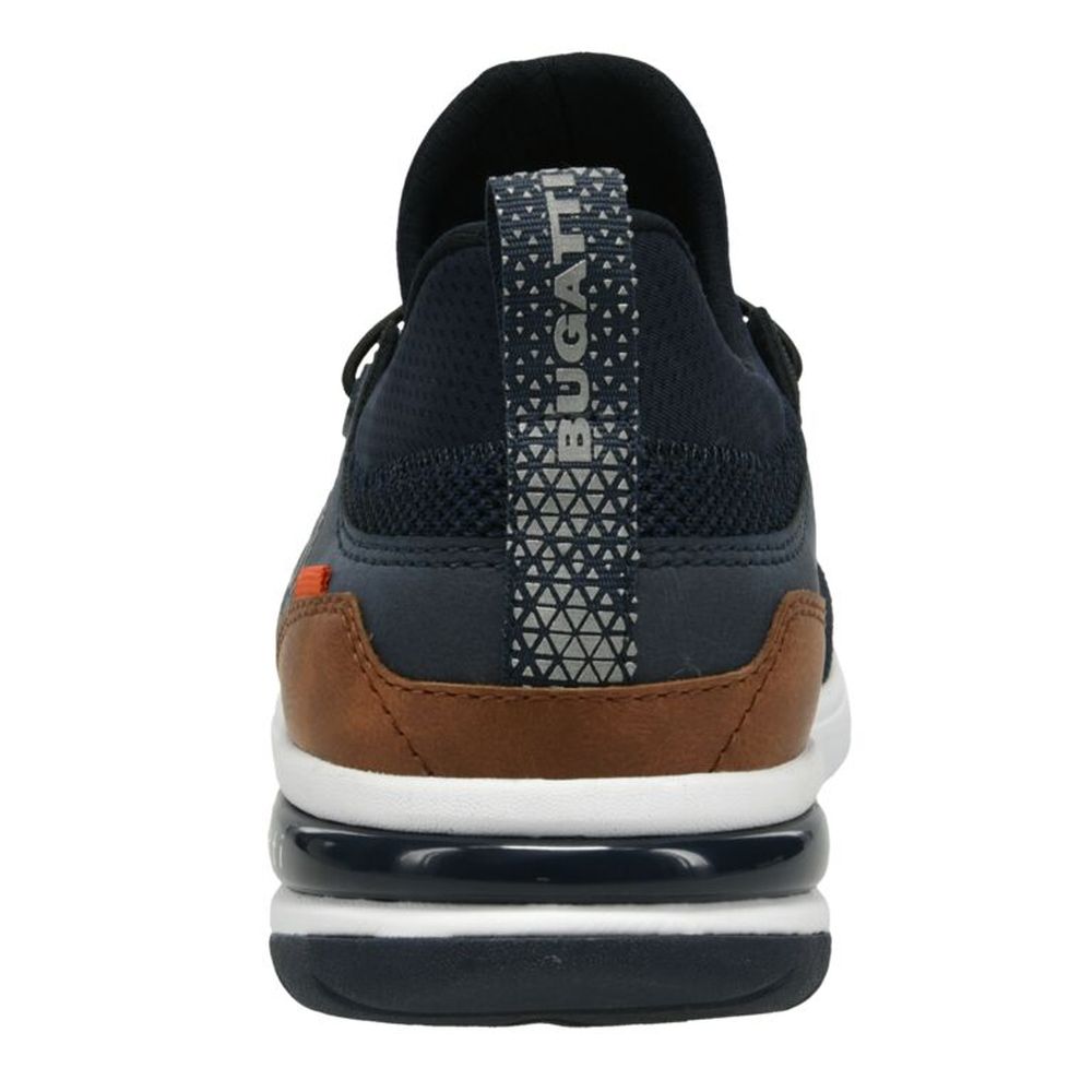 Obuv, která zaujme, to jsou tyto pánské tenisky Bugatti. Tenisky v modré barvě jsou doladěny bílou podešví s logem značky a hnědou aplikací na patě. Díky pružným tkaničkám si lehce obuv utáhnete podle svých potřeb. Tyto pohodlné boty můžete nosit každý den do práce, školy nebo na procházky městem.