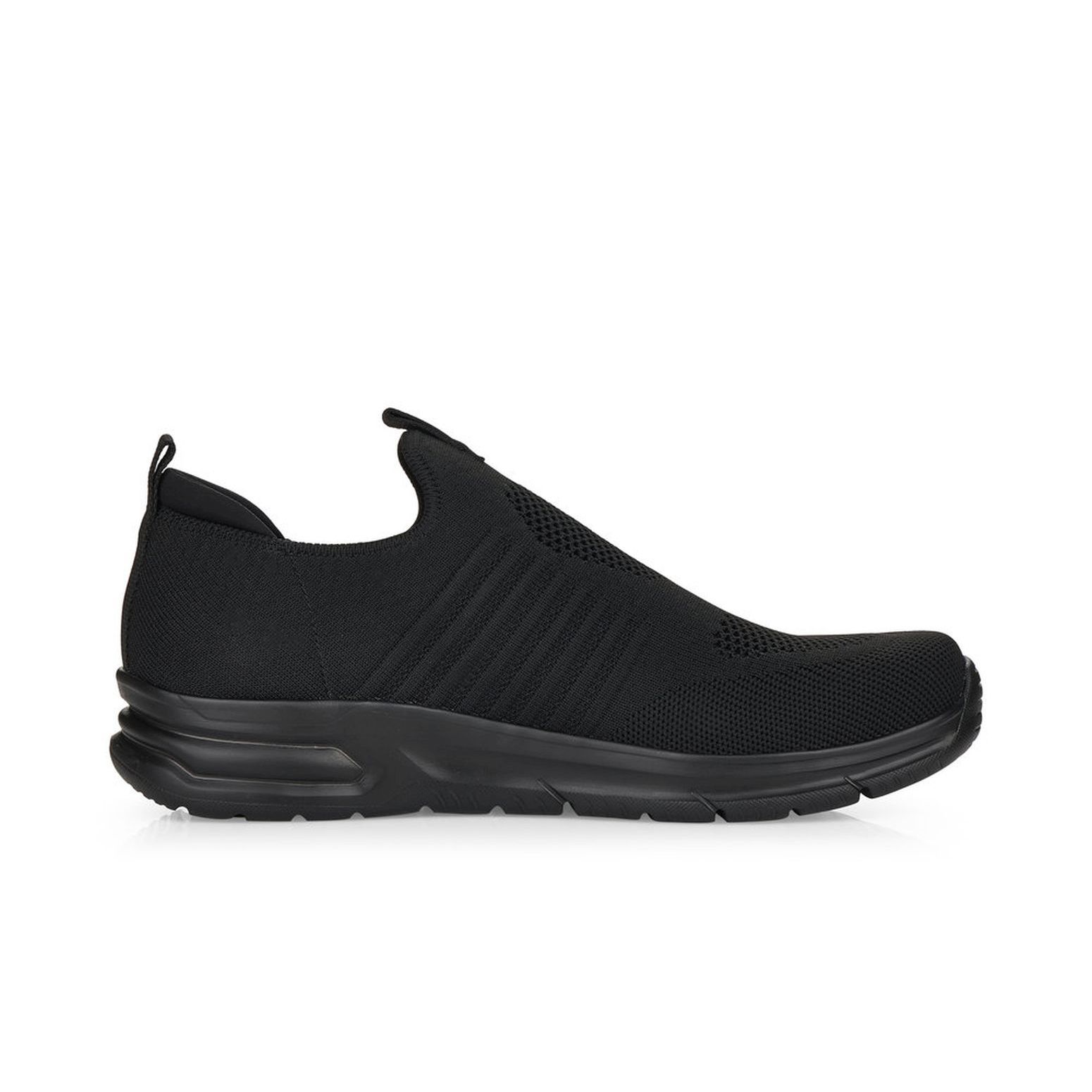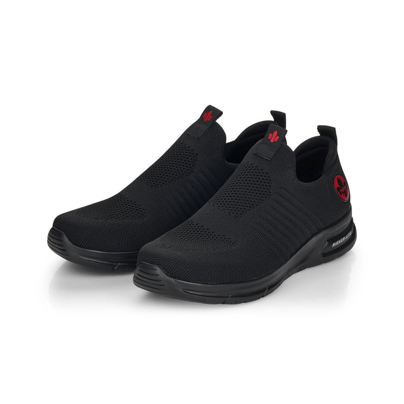 Velmi pohodlné a nadčasové, pánské tenisky značky Rieker v černé barvě. Tyto boty si rychle oblíbíte, díky snadnému a rychlému obouvání. Obuv nemá žádné tkaničky či jiné zapínání. Uvnitř obuvi najdete měkkou stélku, která poskytne Vašim nohám maximální pohodlí při každém kroku. Díky univerzální černé barvě se Vám budou dobře kombinovat s jakýmkoliv outfitem. Technologie: Antistress - podešev, která perfektně tlumí při došlapu nárazy a otřesy, čímž šetří tlak na Vaše nohy a páteř. Navíc je díky této technologii lehká a flexibilní.