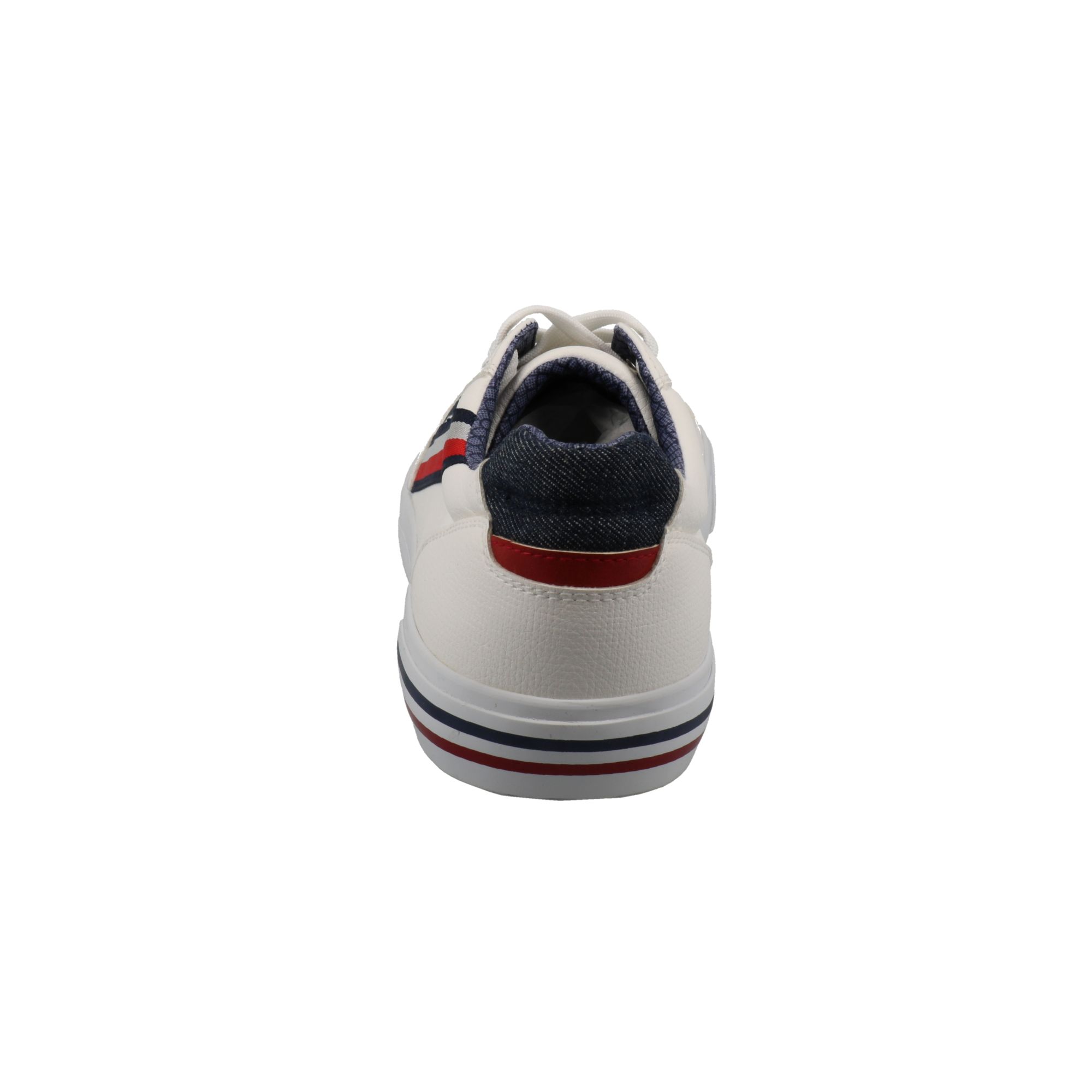 Detailní informace Hledáte moderní, sportovně-elegantní pánské boty? Nabízíme Vám tyto nádherné pánské polobotky v bílé barvě, značky Tom Tailor. Svršek obuvi je z kvalitní syntetiky v hladkém provedení a je doplněn nápisem Tom Tailor z vnější strany na boku a pod ním textilním proužkem v barvách trikolóry. Díky šněrování si boty utáhnete přesně podle svých představ. Celkově dokonalý design dotváří sportovní gumová podešev, zvýrazněná o dva různobarevné tenké proužky v patní části. Tento model nabízíme i v další barevné variantě.
